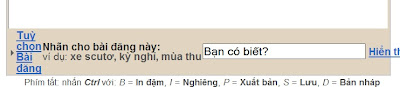 Khi đăng bài, các bạn để ý thấy phía dưới cửa sổ để đánh máy có một ô trống với dòng chữ bên cạnh “Nhãn cho bài đăng này”. Ta chỉ cần đánh máy nhãn vào ô đó là xong. Các bài cùng một chủ đề nên đặt cùng Nhãn, ví dụ như “Sinh nhật”, “blog và các bạn”...