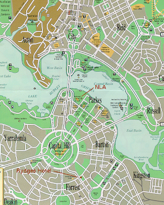 Tớ hiện đang ở một quận ngoại thành của thủ đô Canberra thuộc Lãnh thổ ACT (Lãnh thổ Thủ đô Australia), chính là chỗ chấm đỏ trên bản đô ấy.